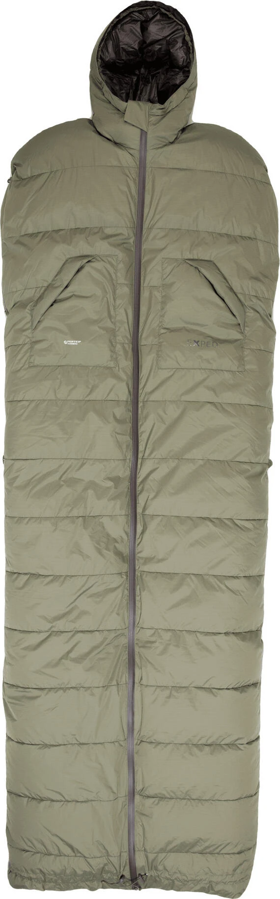 Der Dreamwalker Pro ist ein wahrer Verwandlungskünstler und der wohl vielseitigste Schlafsack auf dem Markt. Er lässt sich nicht nur als Schlafsack, sondern auch als Mantel, Decke oder Hammock Quilt nutzen. Die wetterfeste Pertex Quantum Pro Hülle schützt vor Nässe. Die clevere Verstecknahttechnik und wasserabweisende Reissverschlüsse sorgen zusätzlich für einen optimalen Feuchtigkeitsschutz. Der praktische Wärmekragen lässt sich mit einem Klettverschluss verschliessen und sorgt dafür, dass die Wärme im Schlafsack bleibt. Seitliche Arm-Reissverschlüsse und die per Kordel verschliessbare Fussöffnung ermöglichen es, den Dreamwalker Pro auch als Mantel zu tragen. Den durchgehenden Frontreissverschluss geöffnet, verwandelt sich Schlafsack fix in eine Decke, die auch zwei Personen optimal wärmen kann. Die fünf praktischen Innen- und Aussentaschen bieten Platz für kleinere Gegenstände. Innen- und Aussenmaterial sind PFC-frei und bei der Füllung wird ausschliesslich RDS zertifizierte Daune verwendet.
