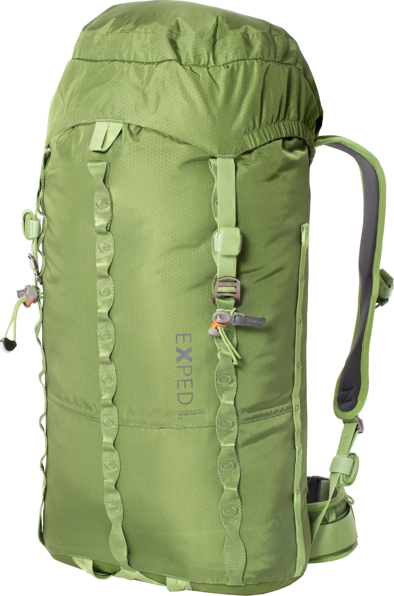 Der Mountain Pro 40 ist der Klassiker unter den EXPED Rucksäcken. Dieser puristische, wetterfeste Alleskönner bietet genügend Platz für alpine Mehrtagestouren im Sommer und Winter. Der Einkammer-Rucksack wurde in Zusammenarbeit mit Bergführern entwickelt, die den Verzicht auf unnötige Details besonders schätzen. Deswegen lassen sich zahlreiche Features entfernen, sodass bis zu 400g Gewicht eingespart werden kann. Die Deckeltasche lässt sich je nach Beladung entweder mit einem mittig angebrachten Karabiner oder zwei seitlichen Riemen fixieren. Vier universell einsetzbare Gurtbänder im Innern Schlaufen und fünf praktische Daisy Chains aussen bieten Befestigungsmöglichkeiten für Ausrüstung. Das wetterfeste, nahtbandversiegelte Material mit einer 3000 mm Wassersäule schützt vor Feuchtigkeit. Dank optimierter Packsackform und körpernahem Sitz ist die Bewegungsfreiheit bei jeder Aktivität garantiert. Die anatomisch geschnittenen und gepolsterten Schulterträger sorgen zusätzlich für einen hohen Tragekomfort.