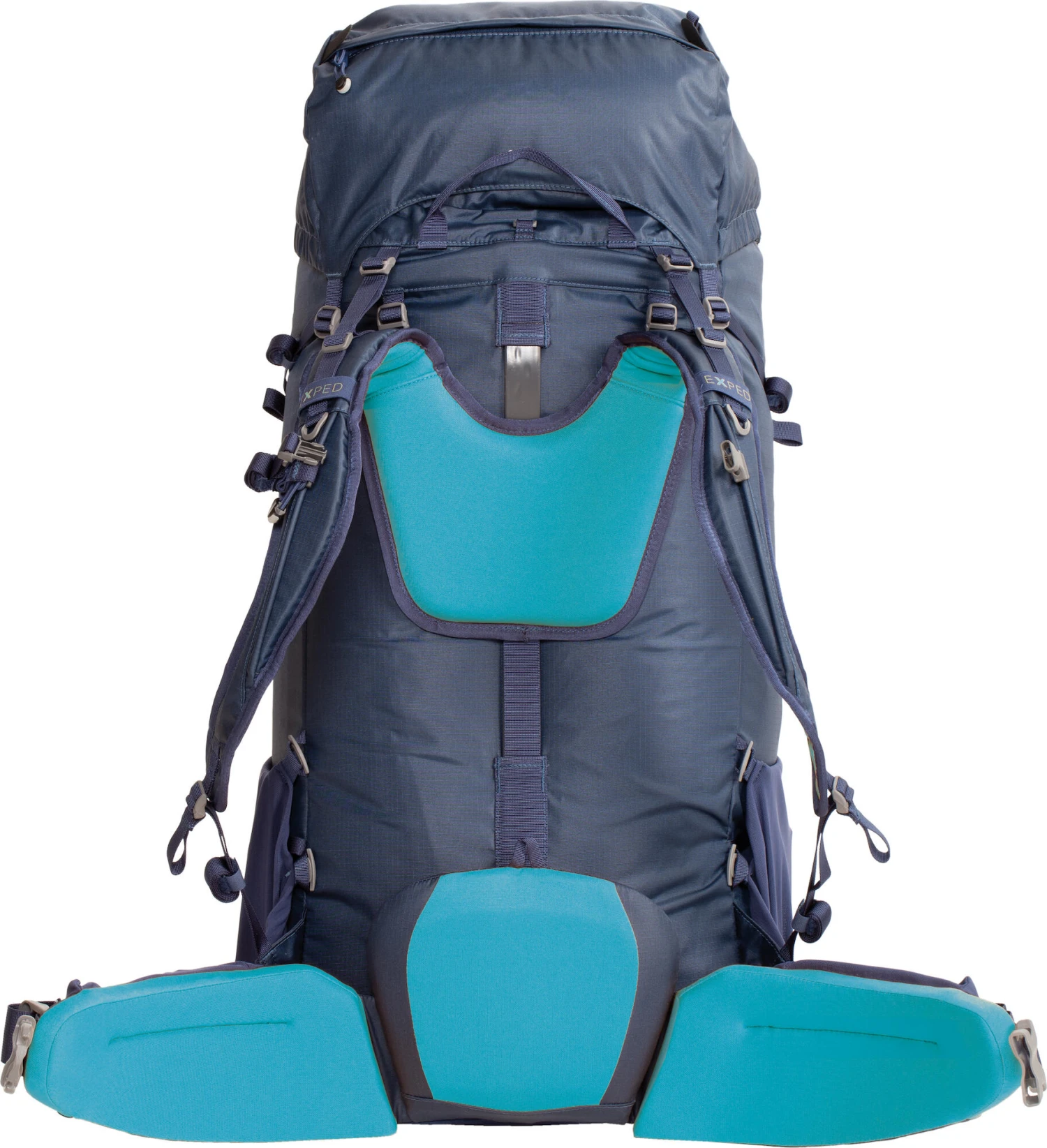 Der Thunder 70 Wmns ist ein vielseitiger Trekkingrucksack mit hervorragender Lastenübertragung. Im Verhältnis zum Volumen und der Ausstattung ist er leicht und eignet sich perfekt für Mehrtagestouren oder längere Trekkingabenteuer. Durch kürzere Schulterträger und kürzeren Hüftgurt ist der Thunder Wmns ideal an die weibliche Statur angepasst. Sehr praktisch sind die drei Zugänge zum Hauptfach. Sowohl seitlich wie auch über die Top- und Frontloader-Öffnung ist die Ausrüstung immer schnell griffbereit. Eine grosse Stretch-Aussentasche an der Front und zwei Seitentaschen bieten zusätzlichen Stauraum. Durch den höhenverstellbaren Deckel lässt sich das Hauptfach je nach Bedarf anpassen. Weitere Befestigungsmöglichkeiten entstehen durch die praktischen Kompressionsriemen an den Seiten, die sich auch frontseitig nutzen lassen. Das ausgeklügelte Komfort-Tragesystem mit minimalen Kontaktpunkten und Alustange ist höhenverstellbar lässt sich ganz einfach an die Rückenlänge anpassen und garantiert einen perfekten Sitz mit hoher Bewegungsfreiheit. Für weiteren Tragekomfort sorgt ein gepolsterter Hüftgurt. Das robuste, wasserabweisende, recyclierte und PFC-freie Material schützt vor Feuchtigkeit.