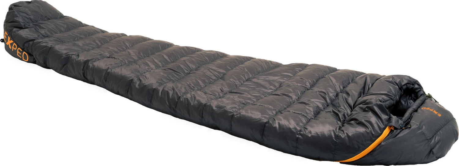 Der Ultra 0° ist ein federleichter und kompakter Sommerschlafsack. Der perfekte Begleiter für alle, die auch bei wärmeren Schlafbedingungen nicht auf einen voll ausgestatteten Schlafsack verzichten wollen. Durch die rundumlaufenden, H-förmigen Daunenkammern lassen sich die Daunen bei Bedarf „nach oben schütteln“ – die sogenannte Downshift-Funktion. Somit lässt sich die Wärmeverteilung mit wenigen Handgriffen optimieren und an die jeweils verwendete Isomatte und die Aussentemperatur anpassen. Zudem verfügt der Ultra 0° wie seine wärmeren Kollegen über eine aufwändig konstruierte, komfortable Triangel-Fussbox, seine Reissverschlussabdeckung verhindert effektiv unangenehme Kältebrücken. Die Füllung aus feinster, RDS-zertifizierter Gänsedaune mit 850+ cuin Bauschkraft verleiht ihm eine ausgezeichnete, homogene Wärmeleistung. Durch die rundumlaufenden, H-förmigen Daunenkammern lassen sich die Daunen bei Bedarf „nach oben schütteln“ und der Schlafsack an die jeweiligen Temperaturbedingungen und die verwendete Isomatte anpassen. Der Fokus liegt bei der Ultra-Serie jedoch nicht nur auf der Füllung, auch bei der Verarbeitung verwendet Exped nur das Feinste vom Feinen. Als Aussen- und Innenmaterial kommt Pertex Quantum zum Einsatz, das komplett aus rezikliertem Polyamid besteht. Details wie der Reißverschluss und das Webbing werden aus reziklierten PET-Flaschen hergestellt. Der Ultra Schlafsack ist in fünf verschiedenen Grössen erhältlich – somit findet jeder die passende Variante!