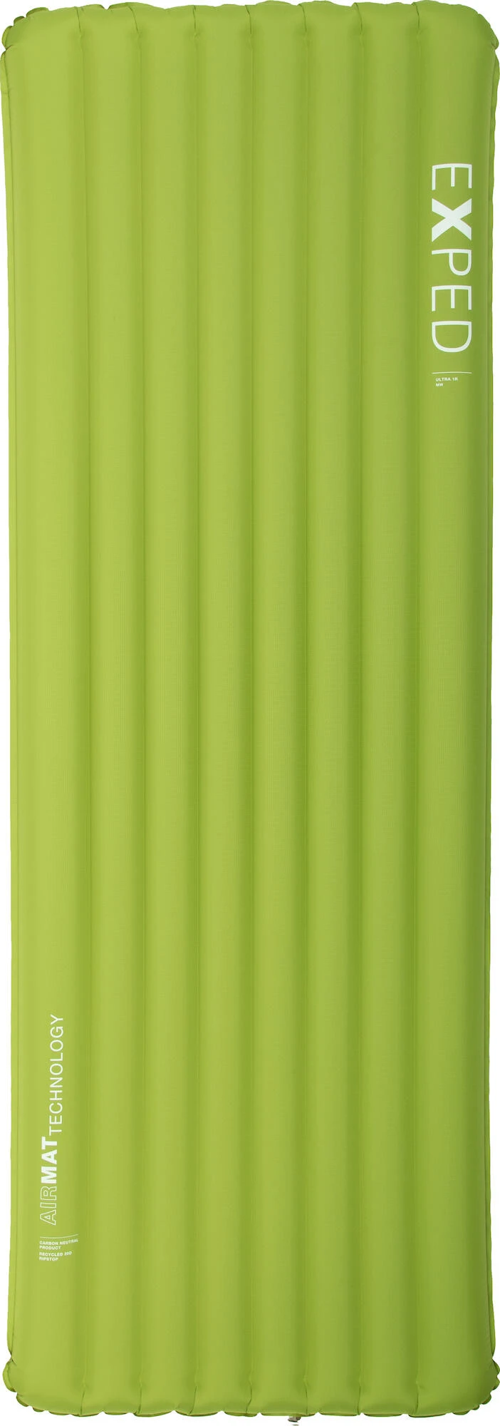 Die Ultra 1R Schlafmatte eignet sich perfekt für Abenteuer aus eigener Kraft, wie Trekken, Weitwandern, Bikepacking und Alpinismus, bei wärmeren Temperaturen. Wenn jedes Gramm zählt, dann ist eine Schlafmatte der Ultra-Serie die richtige Lösung. Sie ist auf minimales Gewicht und Packmass getrimmt. AIRMAT TECHNOLOGY – luftisoliert für den Einsatz bei wärmeren Temperaturen. 7 cm dicke, längsorientierte Luftkammern stützen den Körper und bieten angenehmen Liegekomfort. Erhöhte Seitenkammern zentrieren und halten den Schläfer auf der Matte. Das Aussenmaterial der Ultra-Matten besteht aus rezykliertem 20 D Ripstop-Material. Alle EXPED Matten sind klimaneutral. Inklusive Schnozzel Pumpbag: Schnelles, feuchtigkeitsfreies Aufblasen der Matte ohne Lungenkraft.