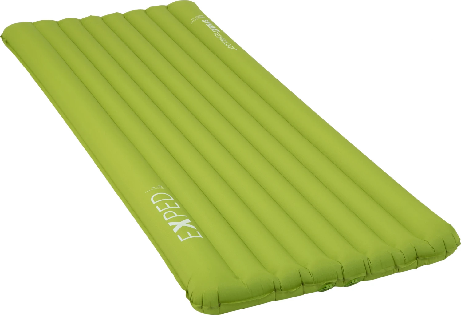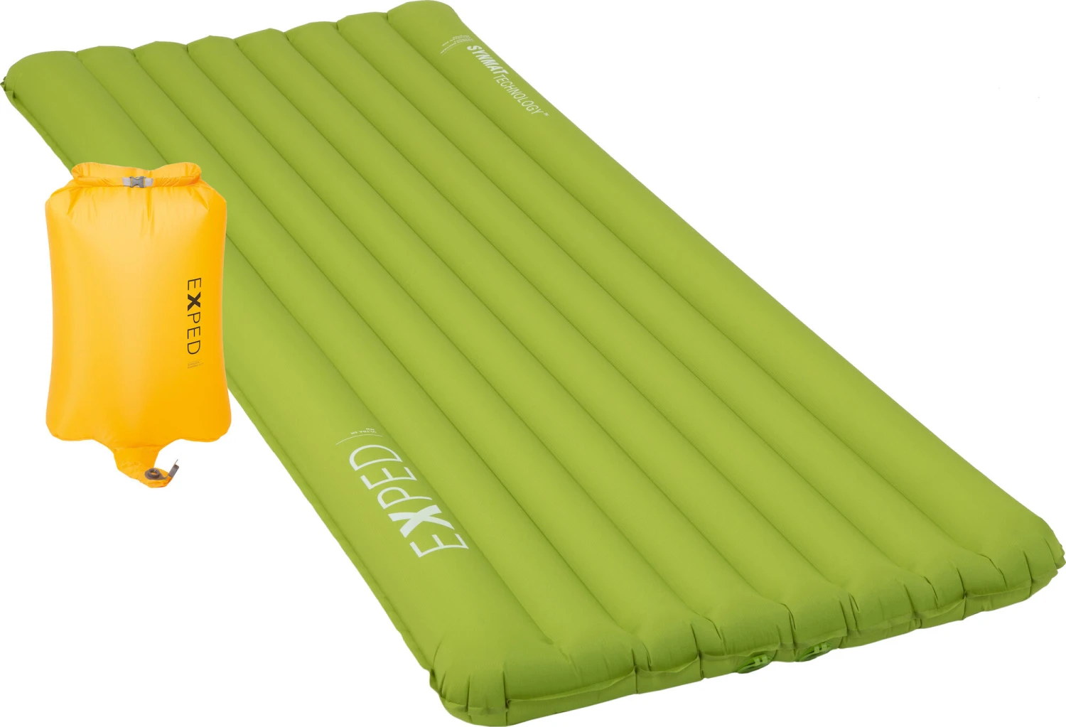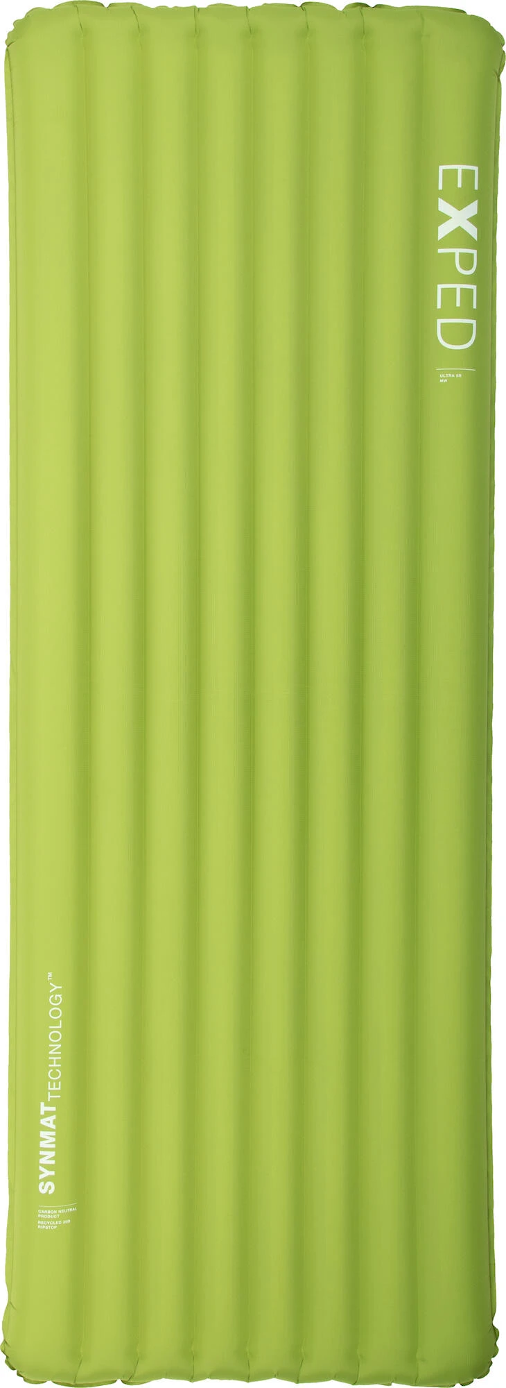Die Ultra 5R Schlafmatte eignet sich perfekt für Abenteuer aus eigener Kraft, wie Trekken, Weitwandern, Bikepacking und Alpinismus, im 4-Saison-Einsatz. Wenn jedes Gramm zählt, dann ist eine Schlafmatte der Ultra-Serie die richtige Lösung. Sie ist auf minimales Gewicht und Packmass getrimmt. SYNMAT TECHNOLOGY™ – Texpedloft-Isolierung, die an der Ober- und Unterseite der Luftkammern verschweisst ist. Das verhindert abkühlende Luftzirkulation. Die 7 cm dicken Luftkammern stützen den Körper und sorgen für Liegekomfort und guten Halt. Erhöhte Seitenkammern zentrieren und halten den Schläfer auf der Matte. Das Aussenmaterial der Ultra-Matten besteht aus rezykliertem 20 D Ripstop-Material. Alle EXPED Matten sind klimaneutral. Inklusive Schnozzel Pumpbag: Schnelles, feuchtigkeitsfreies Aufblasen der Matte ohne Lungenkraft.
